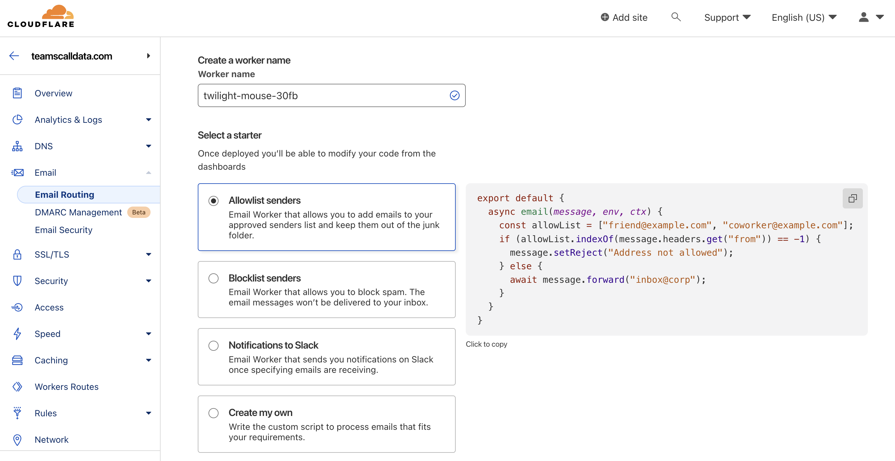 Skipping project domains for now, I have got a family member who has an outlook.com address that is rejected for sign up on ChatGPT (either plan sign up or ‘sign in with Microsoft’), no idea why but that feels solvable with email forwarding. I’ve also got an unused domain, teamscalldata.com, that is just sitting idle on Cloudflare from an old project.